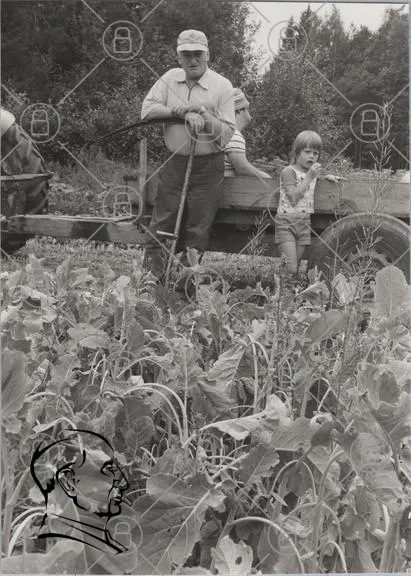 jordbruk, barn, vuxen, traktor, grönsaker, åker, verktyg, landskap, familj, sommar, odling, natur, tradition, svartvitt, arbete, skörd, trädgård, växter, jord, landsbygd, gemenskap, fritid, nostalgisk, rural, skog, vägar, plocka, skörda, jordbruksredskap, familjeminne