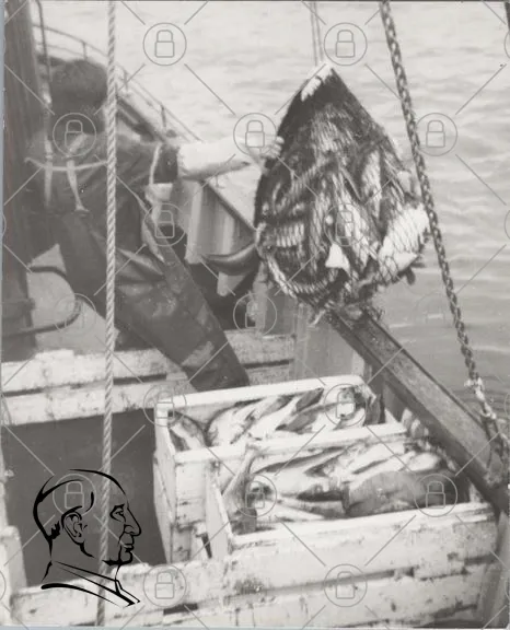 fiske, båt, fiskare, hav, fångst, nät, skaldjur, fiskeutrustning, träbåt, svartvitt, fisksort, fiskeindustri, fiskeplats, arbetskläder, fiskehandtag, fångstmetod, fiskskala, fiskeområde, traditionellt fiske, maritimt liv