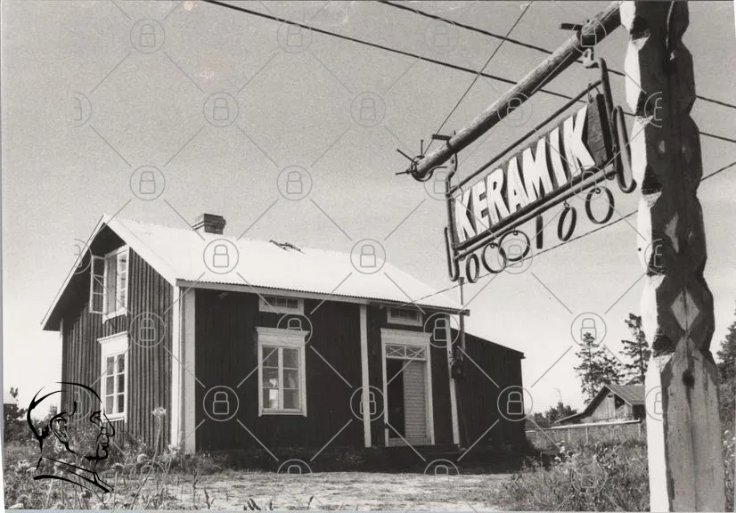 hus, keramik, skylt, svartvit, byggnad, fönster, dörr, landskap, trä, tak, gammal, butik, svensk, landsbygd, hantverk, tradition, kultur, historia, design, konst, verksamhet, utomhus, miljö, natur, detaljer, arkitektur, vintage, lokal, företag, skyltning
