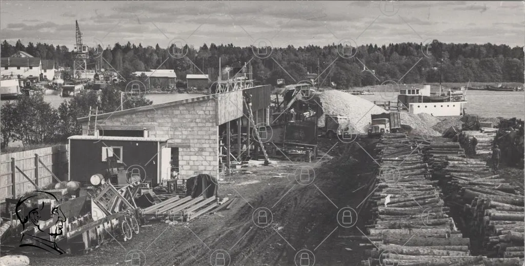 byggarbetsplats, byggnader, konstruktion, maskiner, material, trä, betong, landskap, träd, väg, grus, verktyg, industri, arbete, byggprojekt, skog, transport, lastbil, byggställningar, gammal, svartvit, natur, miljö, infrastruktur, byggnadsarbete, byggmaterial, anläggning, byggnadsställning, byggnadsarbetare, byggplats, byggprocess