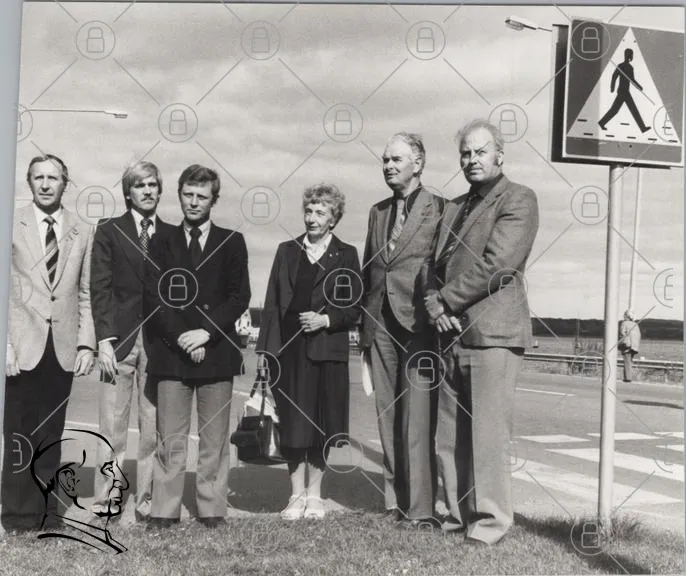 historisk, svartvit, grupp, människor, vägskylt, kostymer, klänning, 1900-tal, utomhus, samling, officiell, fotografering, landskap, män, kvinnor, statyer, monument, politik, minnesmärke, ceremoni, tradition, kultur, historia, samhälle, evenemang, väg, trafik, säkerhet, gående, plats