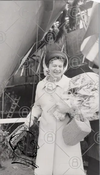 kvinna, blommor, hatt, leende, svartvitt, ceremoni, fest, klänning, korg, dekorationer, bakgrund, trä, flaggor, historisk, evenemang, glädje, tradition, stil, mode, 1900-tal, porträtt, utomhus, festligheter, minne, kultur, samhälle, fotografering, ansikte, uttryck, kläder