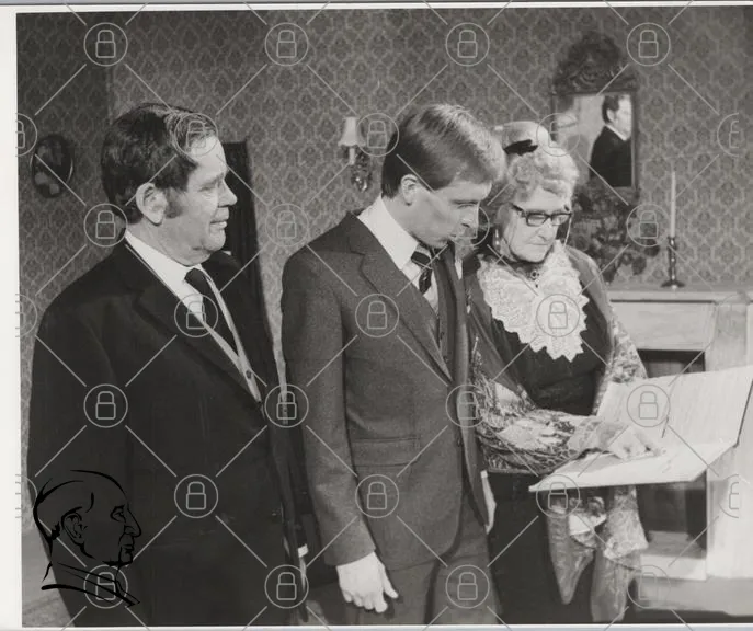 svartvitt, foto, tre personer, man, kvinna, dokument, inomhus, gammal, kläder, 1970-tal, interiör, möbler, ansiktsuttryck, diskussion, traditionell, stil, familj, historia, nostalgisk, scen