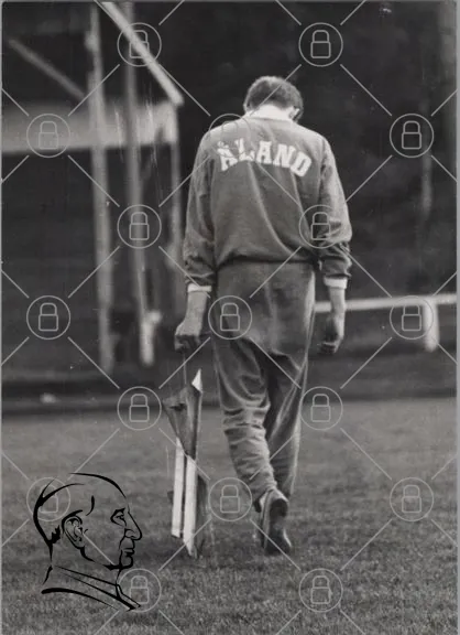 Åland, sport, träning, idrott, person, backe, paraply, svartvitt, kläder, fotboll, gymnastik, utomhus, motion, landskap, aktivitet, ensam, stil, retro, tradition, kultur, natur, gräs, bana, hållning, fokus, rörelse, gemenskap, lag, prestation, historia