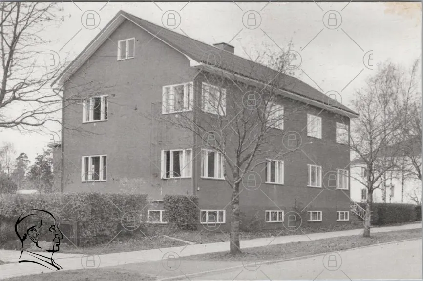 hus, byggnad, fönster, träd, gata, asfalt, grönska, bostad, arkitektur, fasad, kvarter, grå, landskap, utomhus, område, våning, tak, väggar, miljö, natur, urban, stillhet, sommar, skugga, fotogen, svartvit, historia, gammal