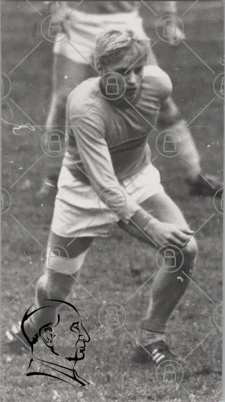 fotboll, spelare, sport, svartvitt, rörelse, träning, match, fotbollsdräkt, gräs, atletisk, 1960-tal, man, lag, tävling, idrott, fotbollsskor, ungdom, energi, snabbhet, fokus, teknik, tradition, utomhus, konkurrens, prestation, passion, laganda, historisk, nostalgi, ungdomssport