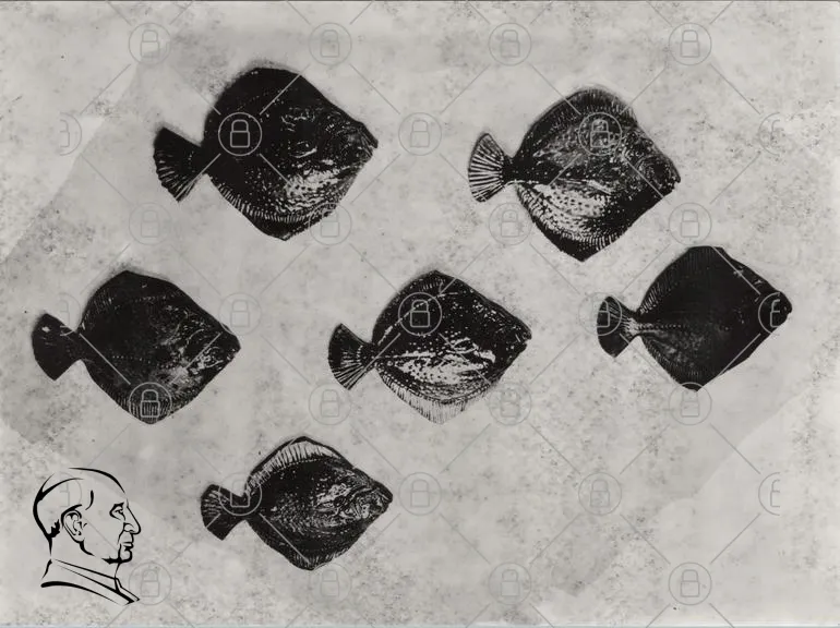 fisk, illustration, svart, vit, hav, vatten, konst, mönster, djur, skala, simma, havsdjur, grafik, retro, design, natur, marin, flundra, stiliserad, teckning, tryck, vintage, akvarell, enkel, minimalistisk, textur, bakgrund, kreativ, dekorativ, konstverk
