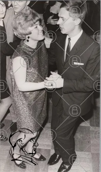 svartvitt, fest, dans, kläder, 1960-tal, glitter, man, kvinna, stil, socialt, par, eleganta, smycken, frisyr, interiör, nöje, retro, vintage, uttryck, kroppsspråk, samspel