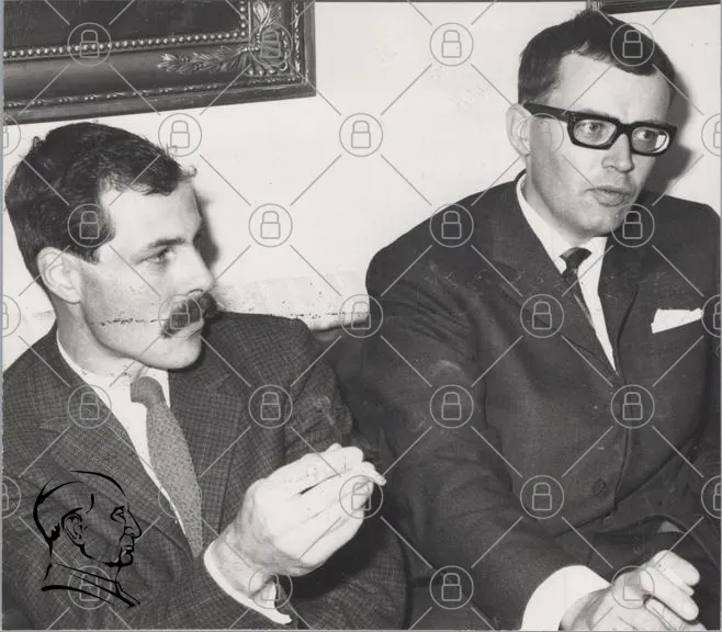 svartvit, män, kostymer, möte, 1960-tal, mustasch, glasögon, diskussion, inomhus, vintage, porträtt, cigarett, uttryck, kläder, stil, ansiktsuttryck, interaktion, fotografi, retro, historia