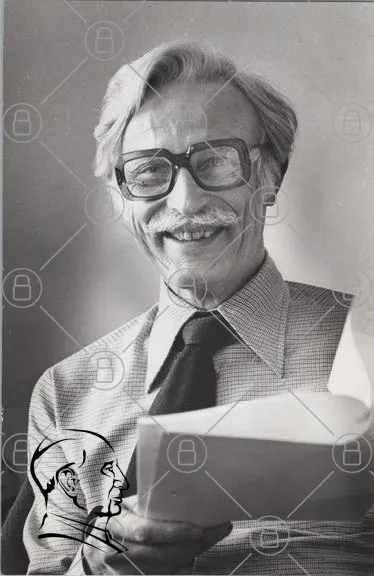 man, glasögon, leende, svartvitt, skjorta, slips, bok, äldre, porträtt, skratt, ansikte, hår, mustasch, kläder, 1970-tal, intellektuell, fotografi, nostalgisk, uttryck, personlighet