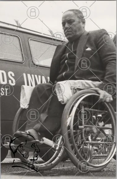 man, rullstol, svartvitt, historisk, stadsmiljö, transport, hjälpmedel, 1900-tal, fotografering, invandrare, samhälle, tillgänglighet, mänskliga rättigheter, social rättvisa, offentlig plats, stadsbild, kultur, livsstil, mobilitet, stöd, gemenskap, identitet, historia, fotografi, rullstolsanpassad, medborgarrätt, aktivism, representation, inkludering, medmänsklighet