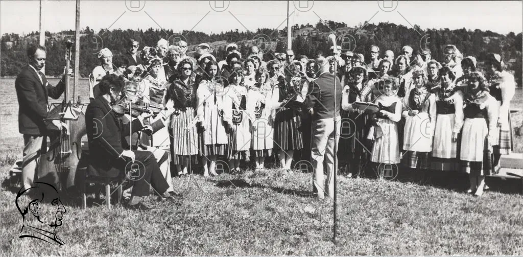grupp, människor, traditionella kläder, fest, samling, utomhus, svartvitt, kvinnor, män, tal, kultur, musik, folkloristiska, ceremonin, historisk, klänningar, hattar, folkdräkt, gemenskap, uppträdande, natur, bakgrund, 1900-tal, evenemang, glädje, samhörighet, fotografering, minnen, festligheter, stil