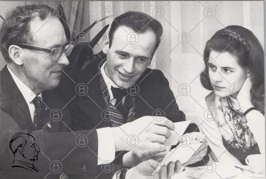 historisk, svartvit, foto, människor, kläder, 1900-tal, interaktion, leende, dokument, kontor, ansikten, gest, samtal, vintage, stil, porträtt, grupp, uttryck, minnen, kultur, tidsepok