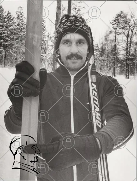 skidåkare, vinter, snö, skidor, sport, träning, utomhus, man, mustasch, handskar, Keitamö, skidhållare, natur, svartvitt, fotografering, motion, friluftsliv, svensk, vinteridrott, skidsport