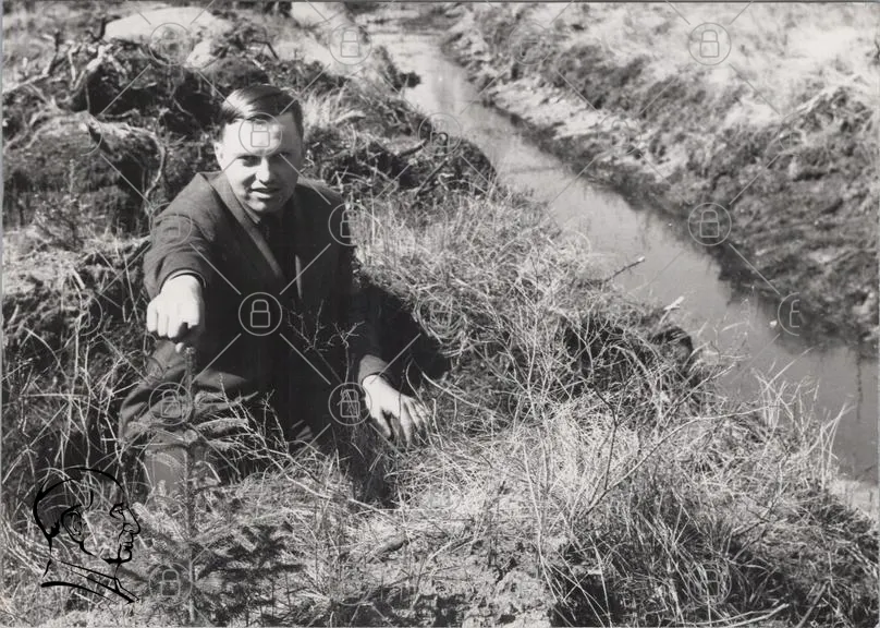 man, svartvitt, natur, gräs, vatten, kanal, kläder, pose, 1900-tal, fotografi, utomhus, träd, buskar, landskap, gest, ansiktsuttryck, stil, vintage, historia, manlig, växtlighet, miljö, jord, skog, avbildning, traditionell, tidsepok, person, fokus, detalj