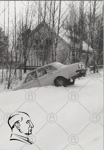 bil, snö, vinter, hus, träd, lutande, gammal, landskap, parkering, olycka, väg, foton, svartvitt, fordon, natur, kallt, landsbygd, svårigheter, halka, skador