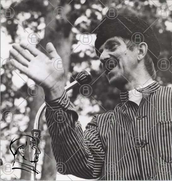 man, talare, gestikulera, svartvitt, kläder, hatt, skog, natur, uttryck, mikrofon, publik, traditionell, kostym, historia, kultur, 1900-tal, fotografi, emotion, kommunikation, samhälle, evenemang