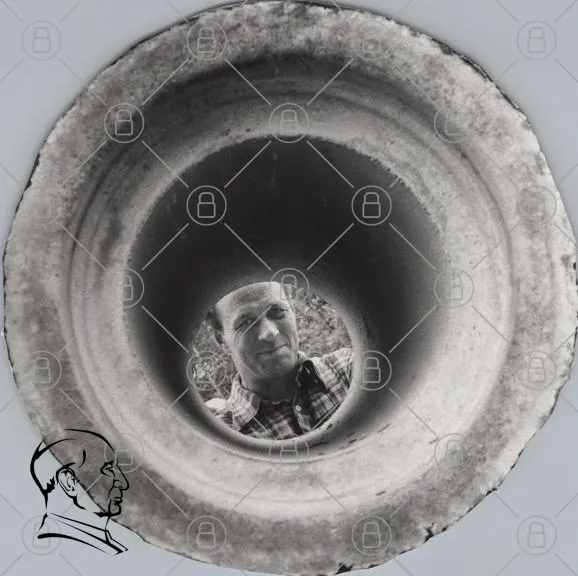 man, rör, betong, porträtt, svartvit, fotografi, perspektiv, ansikte, utomhus, natur, cirkel, fokus, djup, struktur, detaljer, gammal, traditionell, hantverk, byggmaterial, synvinkel, konst, kreativitet, människa, miljö, historia, tidlös, unik, observation, närbild, skugga
