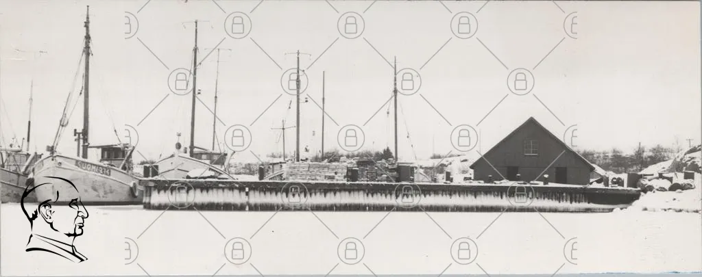 hamn, båtar, mast, vatten, kaj, vinter, snö, byggnader, trä, landskap, svartvitt, stillhet, reflektion, natur, transport, industri, segelbåtar, last, anläggning, struktur, miljö, kust, sjöfart, fiske, aktivitet, panorama, horisont, himmel, träd