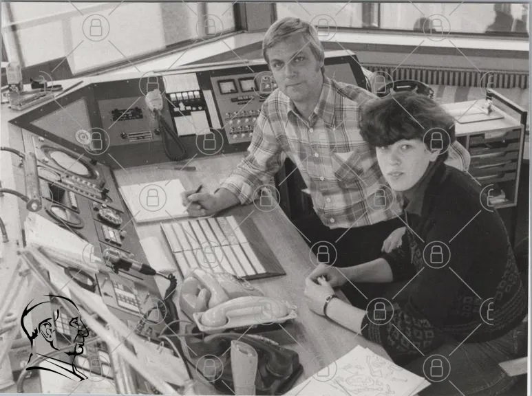 kontor, teknik, dator, män, ungdom, skrivbord, telefon, kontrollpanel, svartvitt, 1980-tal, arbete, interiör, kommunikation, utrustning, dokument, skiss, professionell, samarbete, vintage, retro