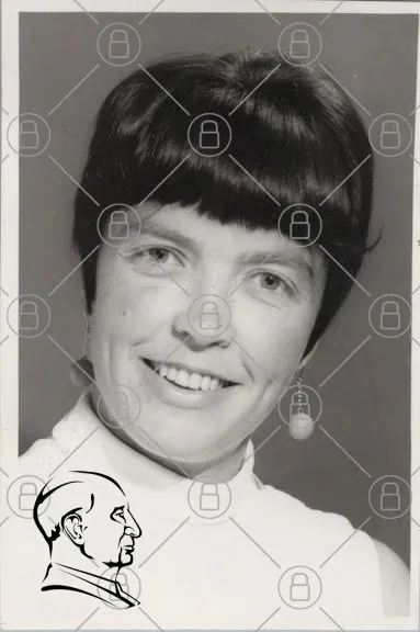 porträtt, kvinna, svartvitt, leende, frisyr, örhängen, halsduk, 1970-tal, fotografi, ansikte, uttryck, mode, retro, personlig, stil, ungdomlig, klassisk, naturlig, enkel, charmig