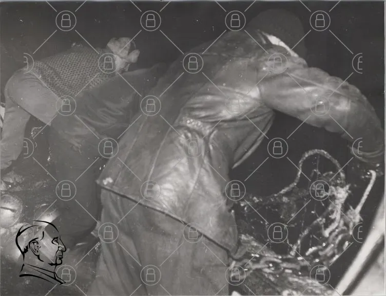 fiske, nät, män, natt, svartvitt, vatten, fiskeutrustning, båtar, hav, arbete, tradition, fiskeindustri, kläder, fiskeplats, fiskehistorik, fiskecommunity, fiskeberättelser, fiskeaktiviteter, fiskeentusiaster, fiskehantverk