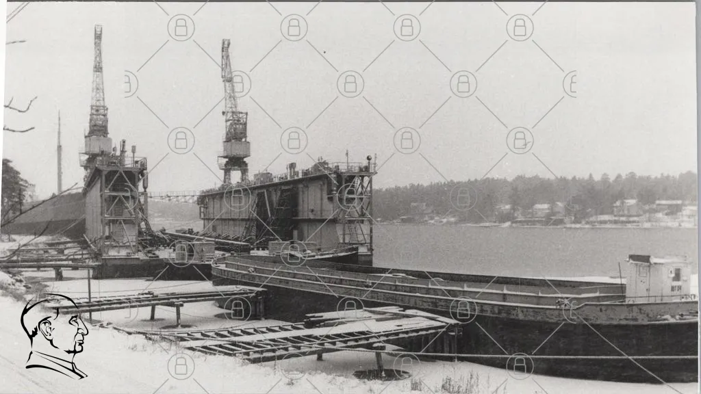 fartyg, hamn, byggarbetsplats, kran, vatten, industri, vinter, svartvit, konstruktion, last, kaj, transport, maskiner, metall, landskap, sjöfart, arbetsområde, stilla, struktur, hav, byggnad, skepp, lastning, utrustning, anläggning, arbetsfordon, sjö, snö, miljö, panorama