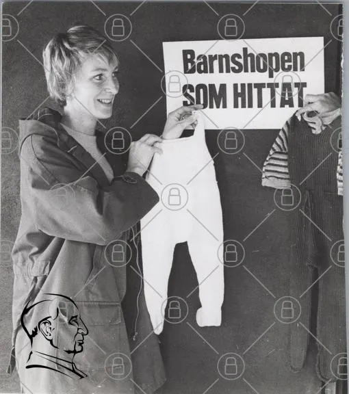 Barnshop, barnkläder, hittat, kvinna, leende, byxor, tröja, svartvitt, skylt, mode, barn, kläder, vintage, 1980-tal, reklam, butik, text, hand, presentation, stil, design, fotografering, retro, accessoarer, barnmode, klädaffär, barnbutik, kreativitet, stilval, visning, utställning
