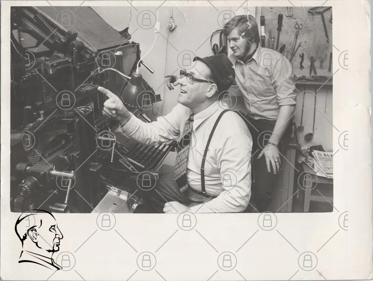 tryckeri, typografi, skrivmaskin, hantverk, verktyg, man, arbete, gammal, fotografi, industri, papper, ljus, teknik, tradition, historia, kreativitet, samarbete, design, produktion, kontor, professionell