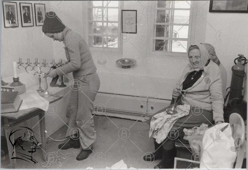 personer, kvinna, man, arbete, inomhus, fönster, belysning, metall, ljusstake, traditionell, kläder, hantverk, sittande, stående, rum, möbler, vintage, svartvitt, interiör, handarbete, silver, dekoration, gammal, kultur, historia, sysselsättning, leende, koncentration, detaljer, miljö