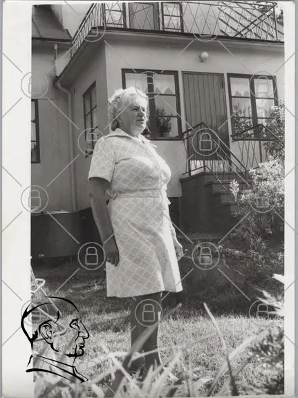 kvinna, trädgård, hus, svartvit, klänning, äldre, fönster, dörr, gräsmatta, stolar, trappa, natur, sommar, utomhus, porträtt, stil, 1900-tal, traditionell, familj, minnen