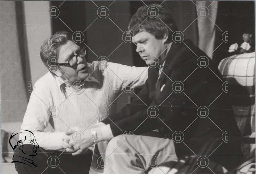 skådespelare, teater, svartvitt, drama, scen, känslor, dialog, kostym, 1970-tal, man, gest, uttryck, samspel, publik, föreställning, konst, kultur, historia, teaterkonst, improvisation, skådespeleri, manus, karaktär, interaktion, prestation, minne, nostalgisk, klassisk, teaterliv, scenkonst