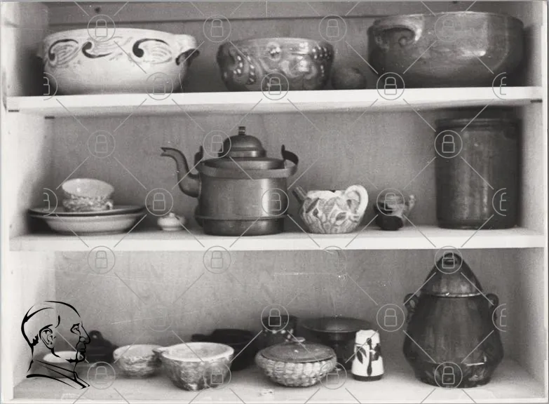 skålar, keramik, porslin, teapot, köksutrustning, hylla, vintage, handgjord, dekoration, hushållsartiklar, svartvitt, gammal, samling, kök, hantverk, fat, burkar, mönster, stil, rustik