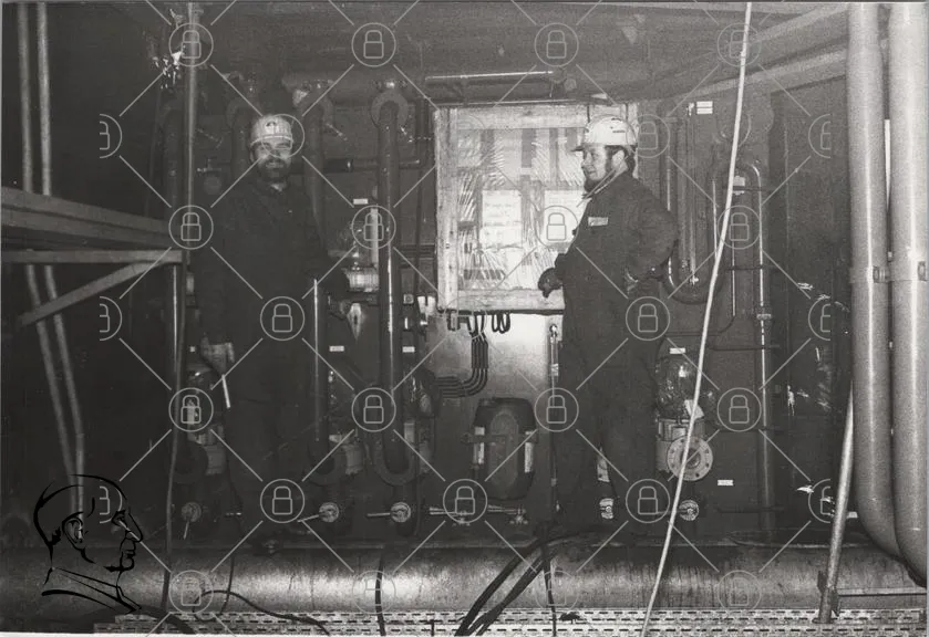 arbetare, industri, maskiner, rör, hjälmar, säkerhet, teknik, svartvitt, verkstad, män, utrustning, installation, arbete, professionell, miljö, mekanik, el, system, kontroll, underhåll