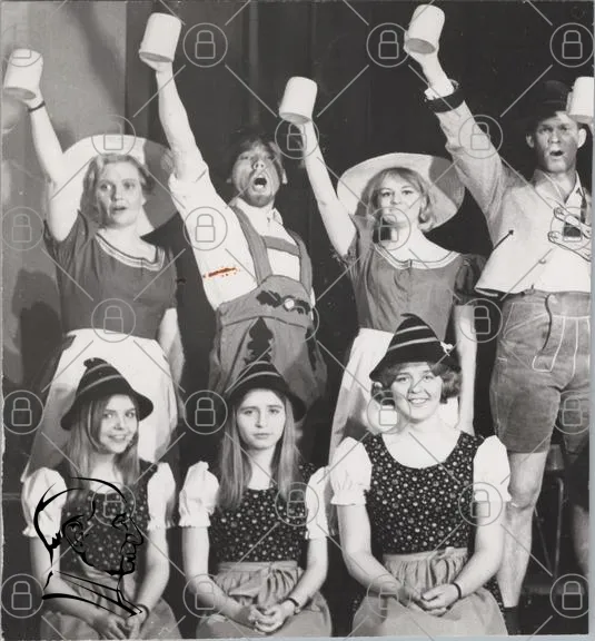 teater, skådespelare, kostymer, dans, föreställning, humor, traditionell, kläder, publik, scen, svartvitt, underhållning, hattar, glas, leenden, grupp, kvinnor, män, 1970-tal, fest, kultur, musik, show, glädje, uttryck, samarbete, gemenskap, kreativitet, artister