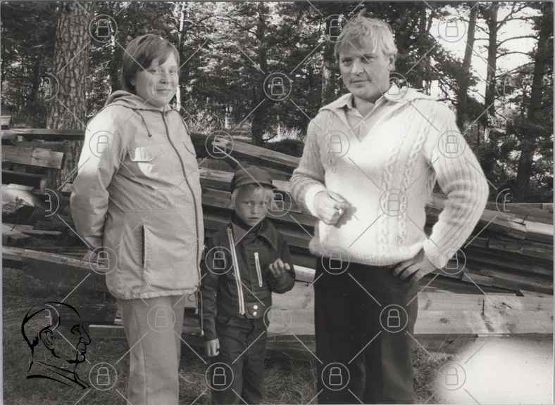 barn, pojkar, vuxna, skog, trä, svartvitt, kläder, leende, allvarlig, natur, familj, 1980-tal, utomhus, samling, män, pojke, jacka, tröja, fotografi, nostalgi