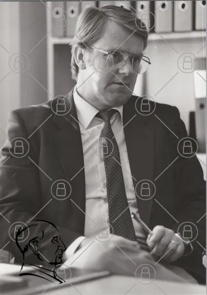 man, kostym, glasögon, kontor, svartvitt, seriös, diskussion, skrivbord, penna, affärsmann, professionell, uttryck, kläder, hår, ansikte, fokus, arbete, miljö, inomhus, 1980-tal, stil, kroppsspråk, kommunikation, ledarskap, presentation, analys, reflektion, tankar, beslut, möte
