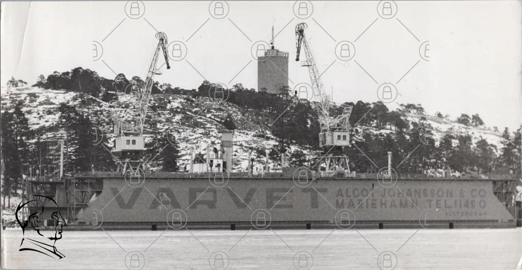 hamn, fartyg, kranar, industri, byggnader, vatten, landskap, maritim, transport, varv, Algot, Jonsson, Mariehamn, skärgård, Sverige, konstruktion, last, lastfartyg, sjöfart, hav, kaj, anläggning, arbetsplats, utsikt, stad, natur, historia, kultur, teknik