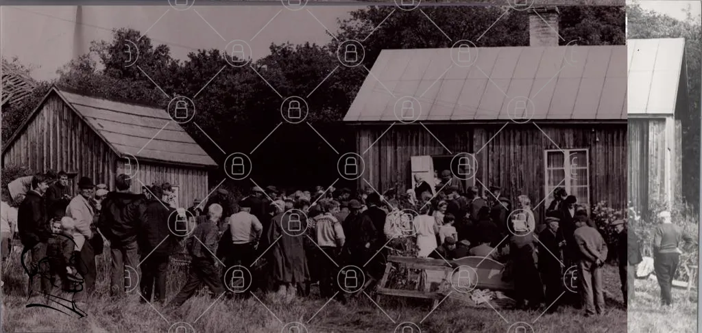 grupp, människor, träbyggnad, utomhus, samling, historisk, svartvit, kläder, barn, vuxna, landskap, natur, aktivitet, folkmassa, tradition, gammal, gård, interaktion, ansikten, kultur, samhälle, händelse, fotografering, 1900-tal, rural, gemenskap, fest, nyfikenhet, samarbete, minnen