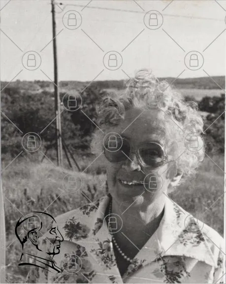 kvinna, glasögon, leende, blommig skjorta, grått hår, utomhus, natur, landskap, vintage, svartvitt, sommar, gammal, porträtt, solglasögon, träd, mark, fotografi, 1900-tal, personlig, traditionell, avslappnad