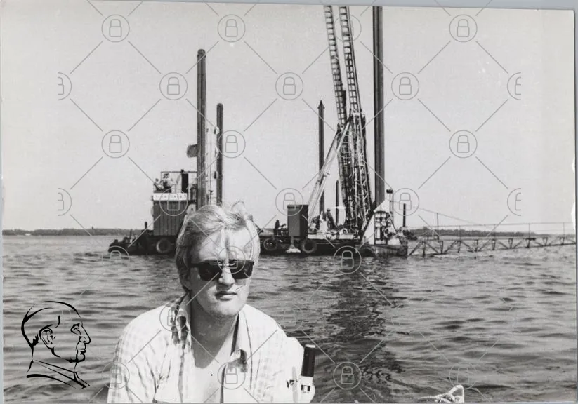 man, solglasögon, båt, vatten, byggmaskiner, kaj, svartvit, 1980-tal, konstruktion, hav, arbetsplats, industri, fiske, landskap, teknik, människa, utrustning, marina, foto, retro