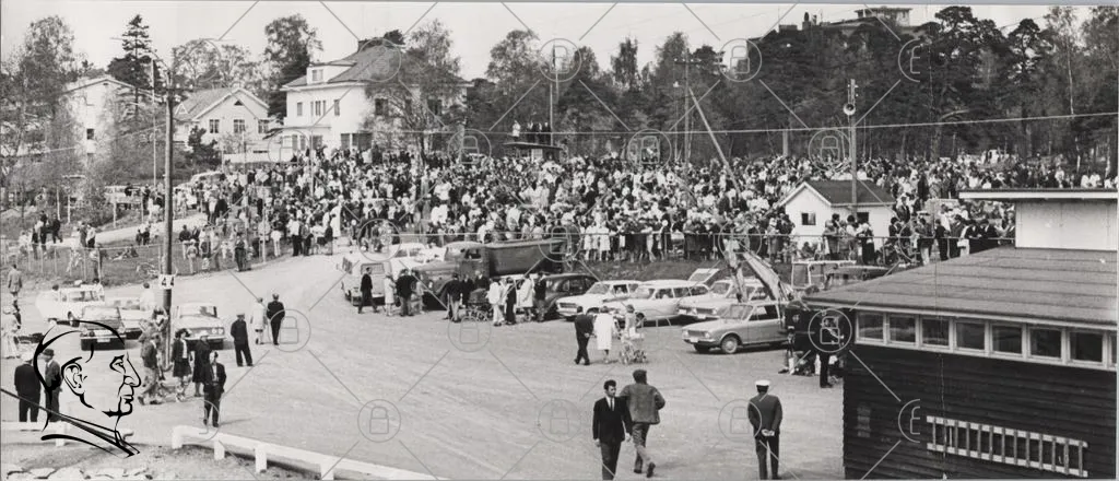 folkmassa, bilar, byggnader, träd, evenemang, svartvitt, människor, kläder, 1960-tal, fest, samling, fotografering, landskap, gator, publik, aktivitet, torg, tradition, historia, utomhus, socialt, kultur, sport, festligheter, uppträdande, stämning, gemenskap, arrangemang, festlig, retro