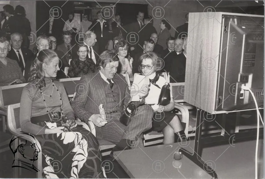 publik, evenemang, kläder, 1970-tal, svartvitt, sittande, män, kvinnor, diskussion, socialt, mode, retro, samling, föreställning, åskådare, interaktion, stil, fotografi, nostalgi, sällskap