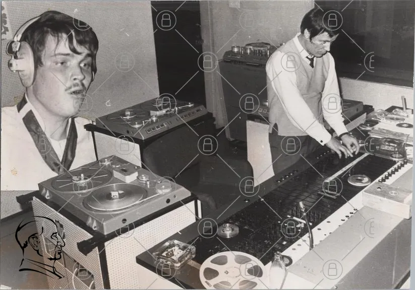 musik, ljudteknik, inspelning, skivspelare, mixer, bandspelare, retro, studio, män, 1960-tal, svartvitt, teknik, ljud, produktion, professionell, utrustning, vintage, ljudmixning, kreativitet, artister, musikproduktion