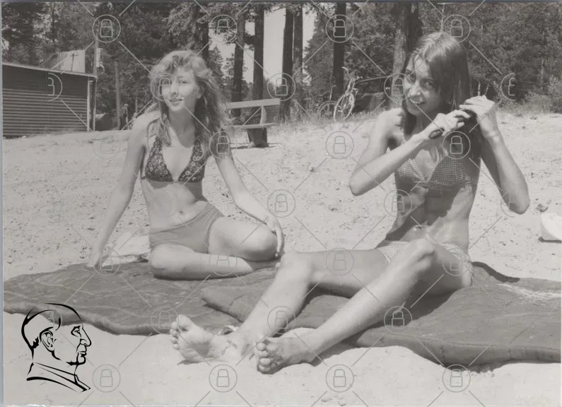 strand, badkläder, tjejer, sol, sommar, sand, handduk, skratt, natur, träd, cykel, vintage, svartvitt, avkoppling, vänskap, ungdom, solglasögon, frisyr, fotografering, nöje, utomhus, lek, vatten, solbränna, kropp, stil, mode, minnen, semester, glädje