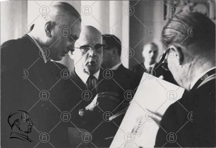 historisk, svartvit, möte, män, diskussion, dokument, glasögon, kostymer, 1900-tal, politik, ledarskap, ansikten, inomhus, allvarlig, samarbete, beslut, arkitektur, kontor, retro, vintage