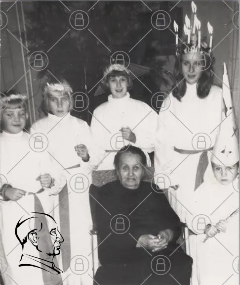 Lucia, barn, tradition, jul, ljus, kransar, vit, kläder, sång, fest, Sverige, familj, gammal, kvinna, stjärngossar, luciatåg, högtid, vinter, firande, kultur, gemenskap