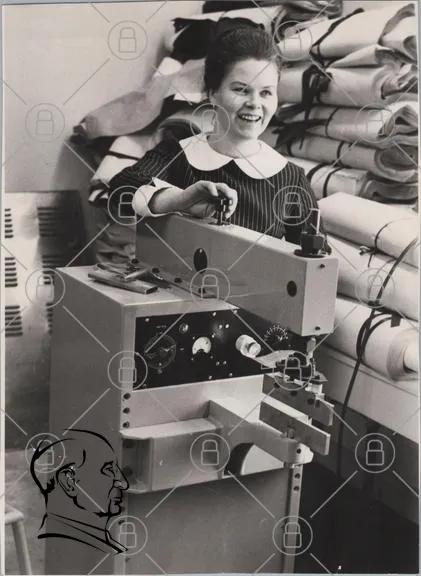 kvinna, maskin, teknik, svartvitt, leende, kontor, 1950-tal, industri, verkstad, utrustning, arbete, textil, produktion, retro, historisk, professionell, arbetsmiljö, innovation, design, mekanik, hantverk, kreativitet, arbetskläder, arbetsredskap, maskinteknik, kvinnoarbete, tradition, hantverkskonst, arbetsplats, maskinoperatör, vintage