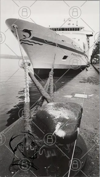 båt, kaj, rep, vatten, hamn, fartyg, svartvit, strand, brygga, lastfartyg, Freeport, marina, kajplats, ankare, sjöfart, transport, industri, hav, landskap, reflektion, linjer