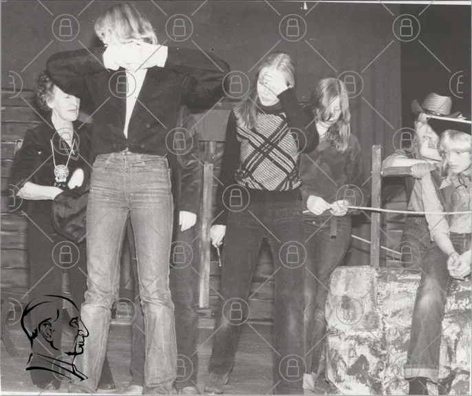 svartvitt, teater, skådespelare, kostymer, scen, 1970-tal, publik, föreställning, uttryck, drama, ungdomar, kläder, rekvisita, ansiktsuttryck, samspel, konst, performance, grupp, interaktion, känslor, kreativitet